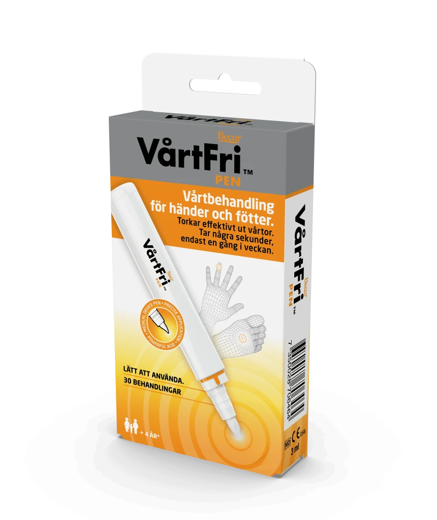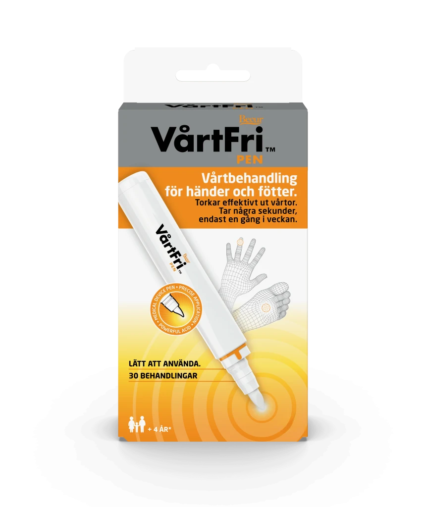 3 mlVårtFri® PEN är en unik och effektiv behandling mot vårtor som bara tar några sekunder att applicera. Lösningen kan användas av hela familjen för att ta bort vårtor på händer, fötter, armbågar och knän.